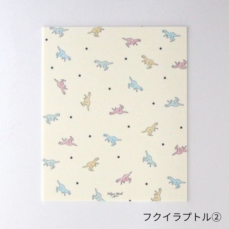 恐竜王国 福井で発掘されたフクイラプトルがあしらわれたポップでかわいい懐紙です、恐竜ファンにも喜ばれる一品で男女問わずお使いいただけるデザインです。