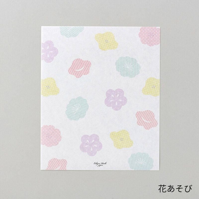 【花あそび】かわいらしい梅や木瓜の花シルエットの中に日本の模様を組み合わせた縁起の良いデザインの懐紙です。